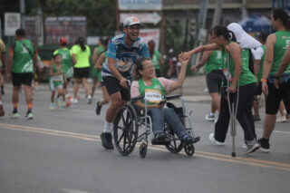 Ritchie Malacan and a Person with Disability High-Fiving on the MILO Marathon Surigao Race Track