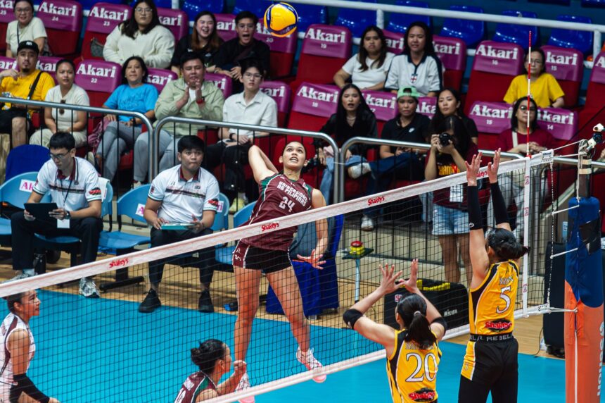 The Fighting Maroons uncorked a closing 8-0 barrage in the deciding set to erase a six-point deficit and walk away with a huge victory in Pool C of the league, backed by Shakey’s Pizza Parlor, Peri-Peri Charcoal Chicken, Potato Corner and R and B Milk Tea.