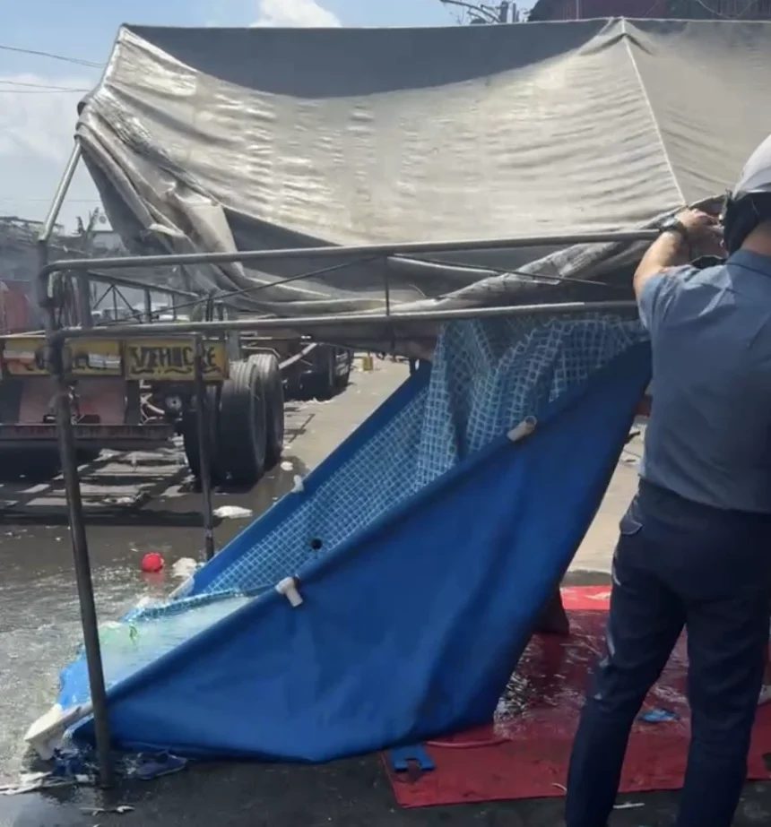 “May pulis pa raw muntik madulas dahil sa nagkalat na oils na galing sa mga basura. Nilatagan pa raw ng mga swimming pools kaya nabawasan ang lanes ng mga motorists (A police officer almost slipped because of oil spilled from the trash. The lanes were further blocked by the swimming pools, reducing space for motorists),” said Lt. Col. Ronald De Leon, commander of MPD Station 1.